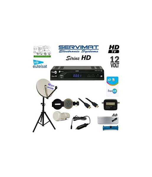 Pack Satellite Camping FRANSAT Servimat SIRIUS HD - 12 Volts - Parabole 65 cm - via Eutelsat 5WA