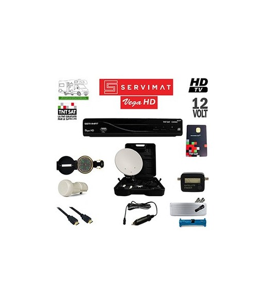 Le Pack Satellite Camping TNTSAT Servimat VEGA HD offre la TV HD française partout. Décodeur 12V, parabole 35 cm et carte TNTSAT incluses pour un usage nomade sans limite.