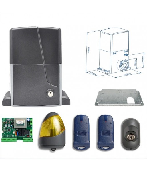 Ce système performant est également livré avec deux télécommandes, un feu clignotant de signalisation, un sélecteur à clé et tous les éléments nécessaires à une installation complète.