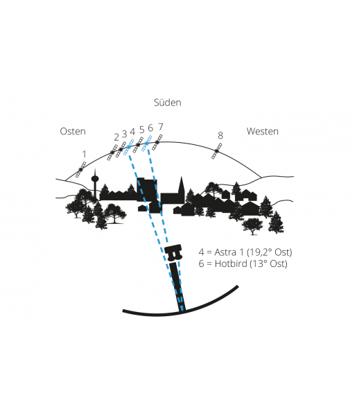 Orientez votre antenne avec soin pour aligner correctement Astra 19.2°E et Hotbird 13°E.