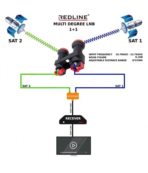 • Réception de deux satellites en même temps avec un seul LNB