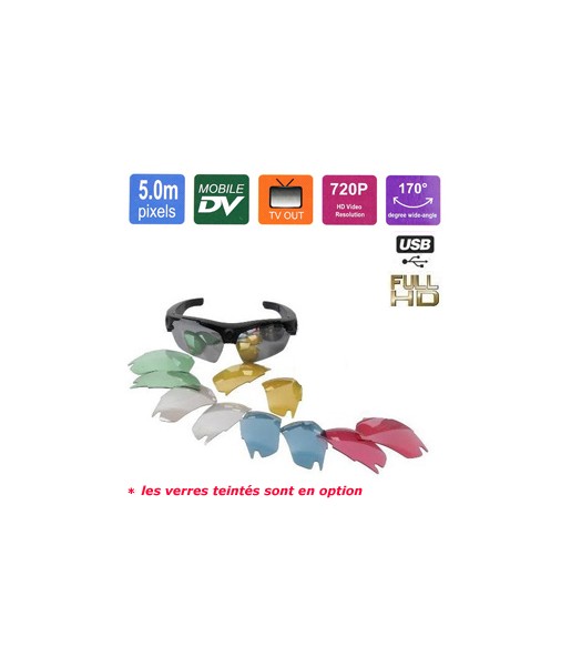 Lunette de soleil avec caméra cachée couleur HD 720p et DVR - 5 mégapixels - grand angle 170° - Jusqu’à 32 Go