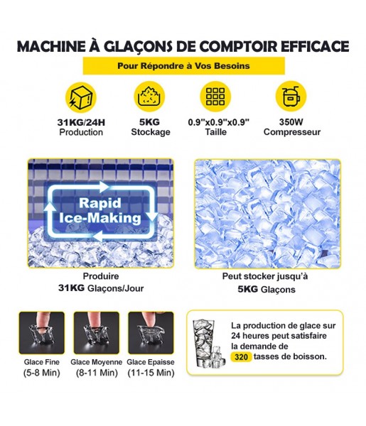 La Machine à Glaçons Comptoir Professionnelle produit jusqu’à 31,75 kg de glaçons par jour avec un stockage de 5 kg. Robuste, rapide et facile à utiliser, elle est idéale pour bars, hôtels, restaurants ou usage domestique grâce à son cycle rapide, son nettoyage automatique et ses matériaux de qualité.