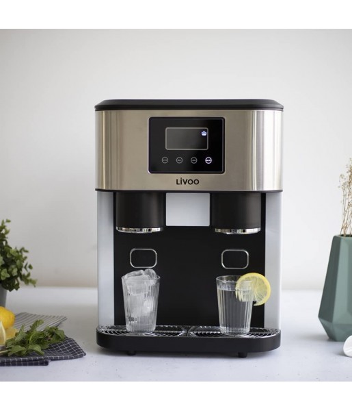 Distributeur à eau et glaçons - Livoo DOM456 - Capacité Eau 2,1 L, Capacité de glaçons 16 kg, 2 Tailles de glaçons, Glace pilée,