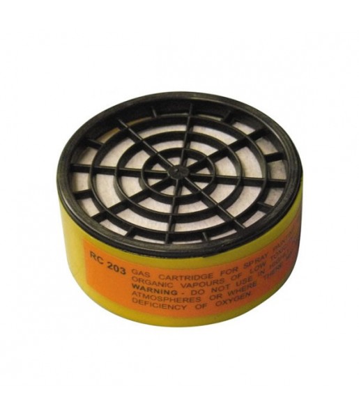 -- Le filtre RC203 peut être utilisé pour le pistolage et les vapeurs organiques de la toxicité inférieure, gaz acides ou chimiques de faible toxicité ;