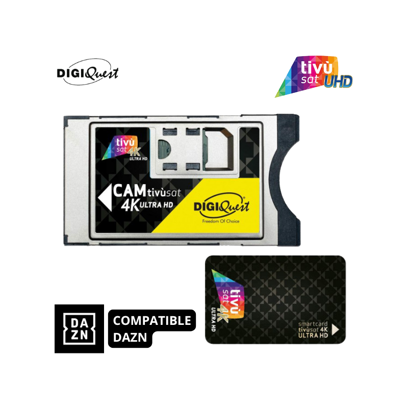 Module Tivùsat Digiquest 4K UHD et carte Mini décodeur avec carte d'accès Tivùsat compatible UHD