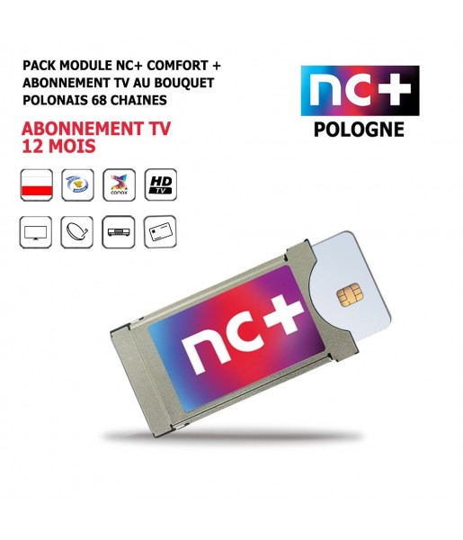 Pack Module NC+ Comfort + Abonnement Tv 12 mois Pologne 68 chaines Nationales et Internationales, HD, Satellite
