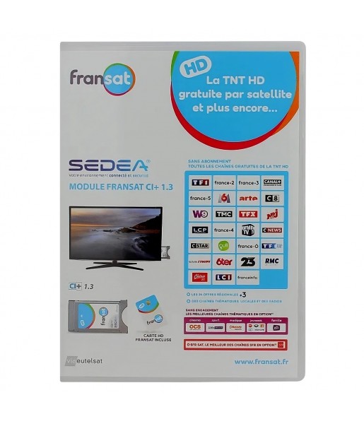 Module + carte FRANSAT pour téléviseurs HD avec tuner satellite intégré. Accès illimité aux chaînes TNT HD par satellite, sans abonnement ni limite de durée.