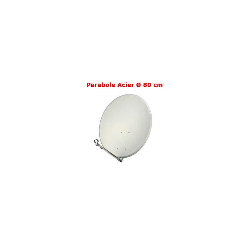 Parabole offset en acier galvanisé de 80 cm, résistante et performante. Idéale pour la réception satellite européenne avec un excellent rapport qualité/prix.
