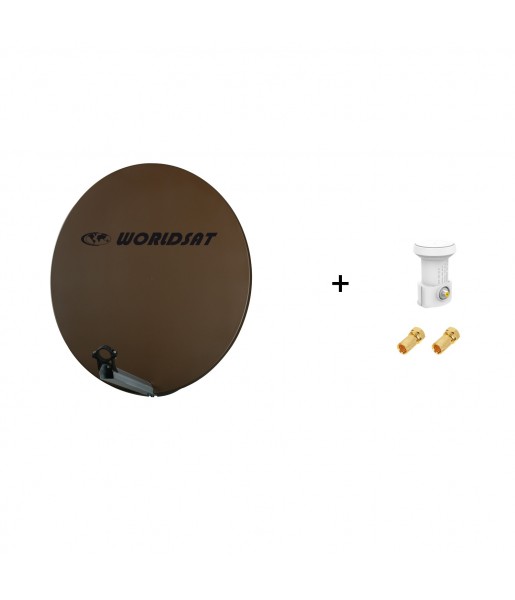 Antenne Parabole Fibre SMC 85 cm Marron WORLDSAT + LNB Single 0,1 dB Full HD 1080p 4K Ultra HD + 2 Fiches F Or - Visserie en Inox.