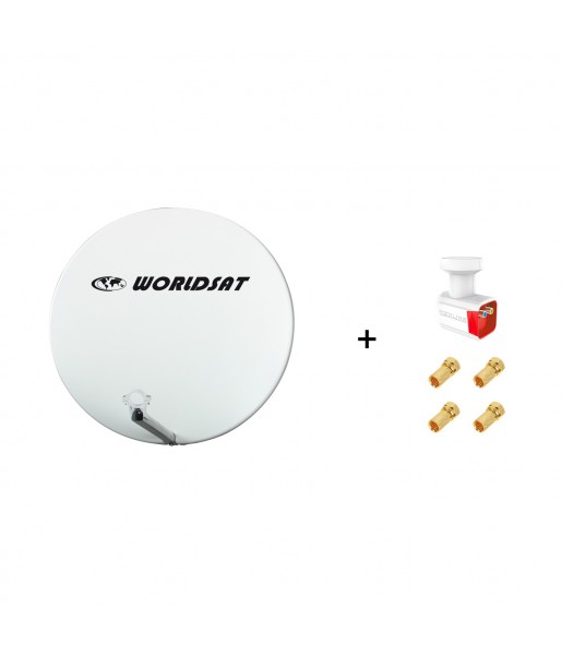 Antenne Parabole Fibre SMC 75 cm Beige WORLDSAT + LNB Twin 0,1 dB Full HD 1080p 4K Ultra HD + 4 Fiches F Or - Visserie en Inox