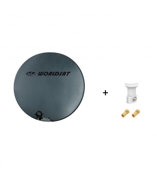 Antenne Parabole Fibre SMC 75 cm Anthracite WORLDSAT + LNB Single 0,1 dB Full HD 1080p 4K Ultra HD + 2 Fiches F Or