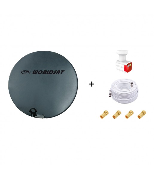 Antenne Parabole Fibre 75 cm Anthracite WORLDSAT + LNB Twin + Câble Coax 25 m
