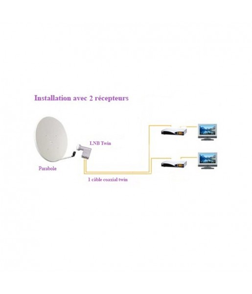 LNB Twin 0,1 dB : Facteur de bruit ultra-bas (0,1 dB) – Compatible Full HD 1080p et 4K Ultra HD – Entrée 10,70~12,75 GHz – Sortie 950~2150 MHz – L.O. 9.75/10.60 GHz