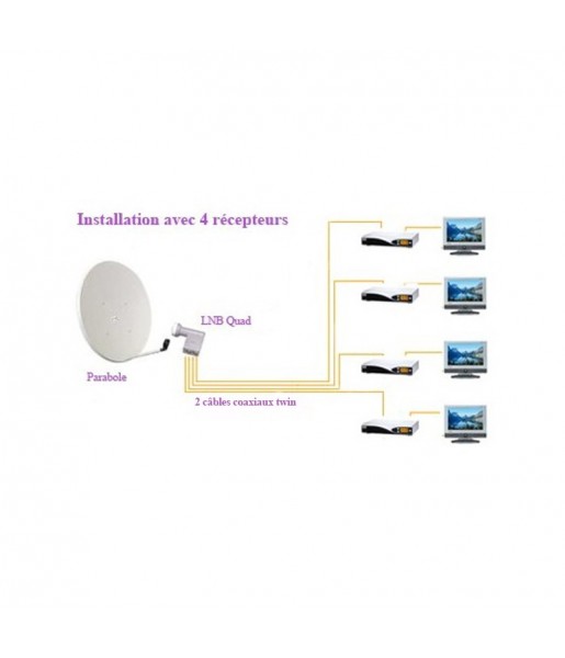 Grâce au LNB Quad, vous pouvez connecter jusqu’à 4 récepteurs ou téléviseurs sans perte de qualité.