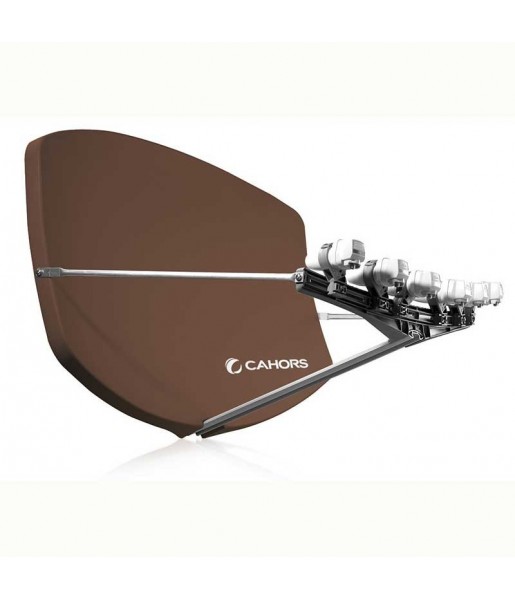 Antenne bigsat marron avec 4 supports LNB Cahors 0140957, idéale pour la réception multisatellite précise et stable, facile à installer et ultra robuste.