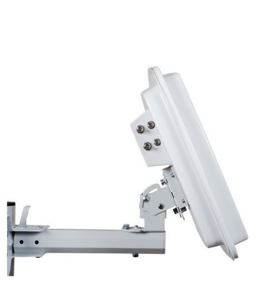 Antenne satellite plate compacte avec 4 sorties QUAD, gain de 33,7 dB et polarisation horizontale/verticale. Fiable, robuste et idéale pour la réception HD.