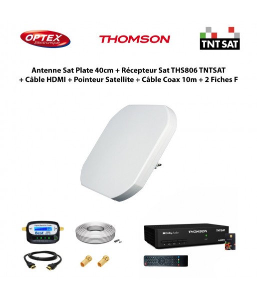 Antenne Satellite Plate 40cm + Récepteur Satellite HD THS806 TNTSAT + Câble HDMI + Pointeur Satellite + Câble Coax 10m + 2 Fiches F