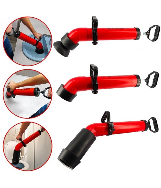 Déboucheur canalisation Pro - 3 Adaptateurs Inclus - Déboucheur à pompe - Evier Le déboucheur à pompe manuel est un moyen efficace pour l'élimination rapide des bouchons des canalisations d'évier, de toilette et de la tuyauterie. Grâce au fonctionnement par pression hydraulique, il est plus efficace qu'une simple ventouse et ne nécessite pas l'utilisation de produits liquides (gel). Déboucher une évacuation devient très simple avec cet outil. Les trois adaptateurs souples en caoutchouc pour évier, toilette et baignoire inclus permettent de déboucher différents types de conduits d'évacuation. Pour faciliter le pompage, le déboucheur dispose de deux poignées : une en partie arrière et une deuxième en partie avant orientable dans toutes les directions. Le déboucheur de canalisation est fabriqué en plastique ABS robuste. Très efficace, vous pourrez avec ce déboucheur : Pompe de force élimine les blocages dans le drain, les cuvettes de toilette, les éviers, les baignoires et les tuyaux d'évacuation. Trois adaptateurs : évier, baignoire et toilette Poignée ergonomique adaptée à la forme de la main Poignée orientable dans toutes les directions Diamètre en sortie : 9,5cm Matière : plastique ABS robuste Poids : 2,67kg
