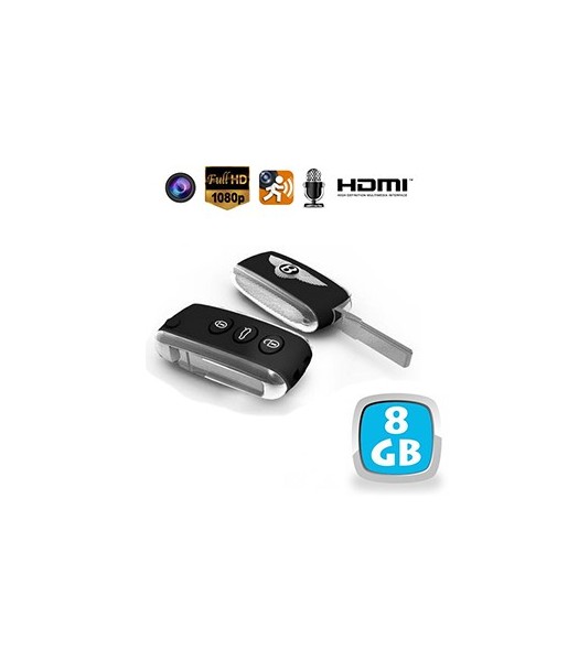Porte-clés de voiture avec caméra cachée couleur et DVR - 5 MP - HD 1080p - détection de mouvement - HDMI - mémoire interne 8 Go