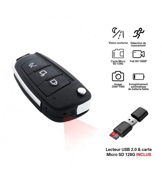 Discrète et facile à utiliser, cette mini caméra espion Full HD 1080P dissimulée dans une clé de voiture enregistre en toute autonomie, avec détection de mouvement, vision nocturne et carte SD incluse. Parfaite pour une surveillance invisible et portable.