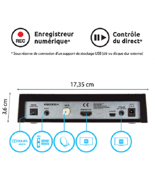 LA TNT HD SATELLITE Recevez les chaînes gratuites de la TNT HD sans abonnement ENREGISTREUR NUMÉRIQUE Enregistrez vos programmes sur vos supports USB Maitrisez le temps ! Faites pause à tout moment ou revenez en arrière pour ne plus rien manquer!