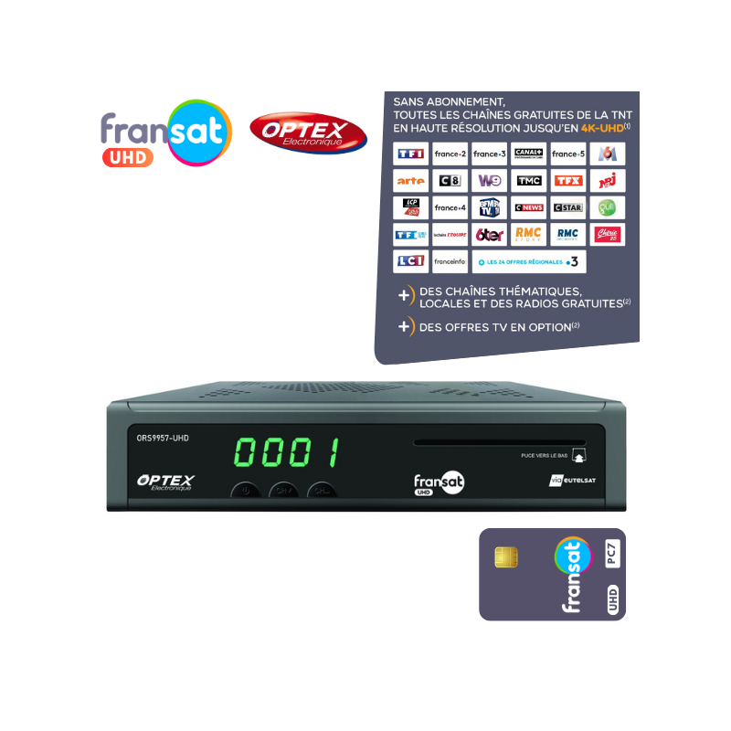 OPTEX Décodeur Satellite Fransat UHD 4K avec carte incluse