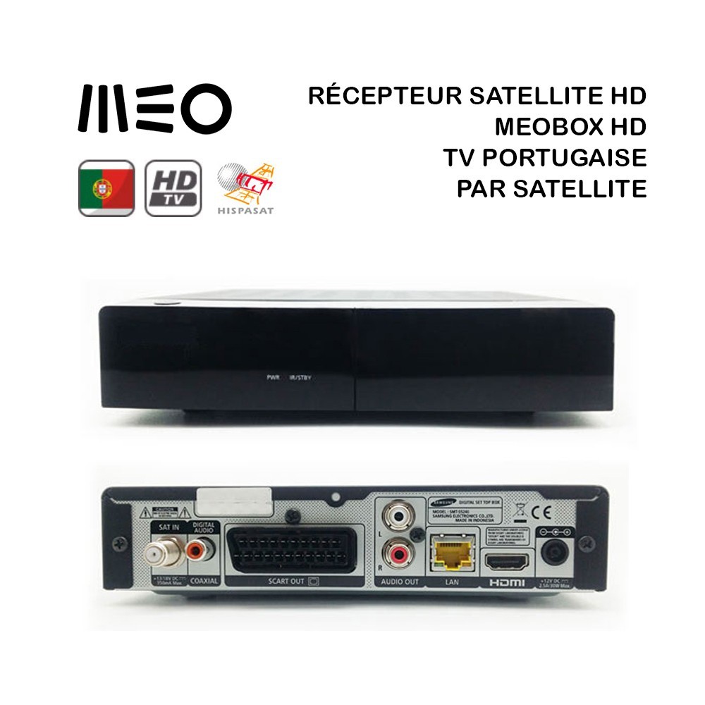 Le Récepteur Satellite HD MeoBox HD est la solution idéale pour recevoir facilement la télévision portugaise en haute définition via le satellite Hispasat 30W-5. Grâce à son système sécurisé avec carte d’accès Méo, vous bénéficiez d’un large choix de chaînes selon la formule choisie, avec une qualité d’image optimale et une installation simple chez vous.