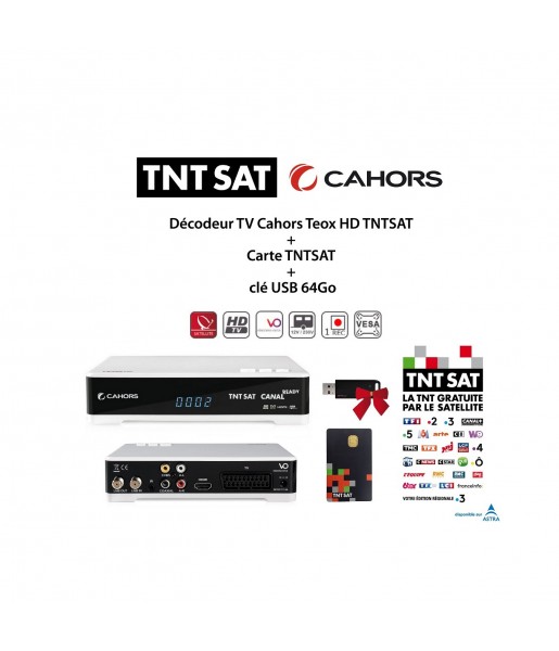 Pack Décodeur TV Cahors Teox HD TNTSAT + Carte TNTSAT + clé USB 64Go