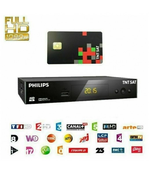 Le récepteur TV HD Satellite PHILIPS DSR3231 TNTSAT offre la TNT HD gratuite via satellite, enregistrement USB, Time Shifting et carte incluse 4 ans.