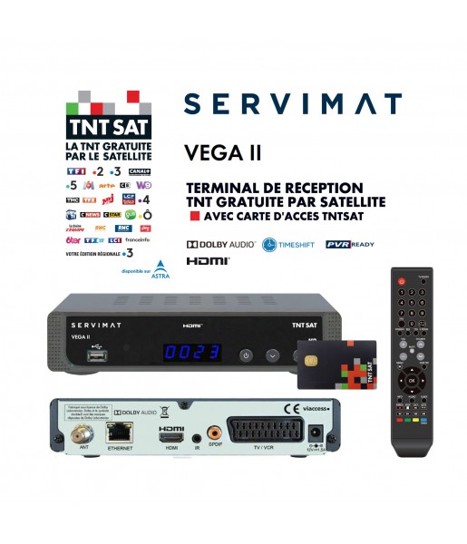 Récepteur TV satellite Full HD - SERVIMAT VEGA II + Carte d'accès TNTSAT V6 - Astra 19.2°, Time Shift, Son Dolby Digital +