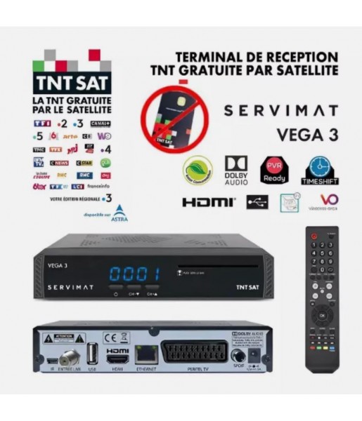 Décodeur Récepteur Satellite HD Servimat Vega 3 S.C TNTSAT avec Timeshift, Ports HDMI, USB, Péritel, SPDIF, Ethernet