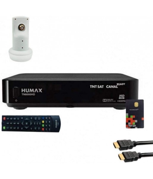 Pack complet Humax avec récepteur satellite HD, carte TNT SAT V6, câble HDMI et LNB Single compatible Full HD et 4K pour recevoir la TNT par satellite avec une qualité d’image exceptionnelle.