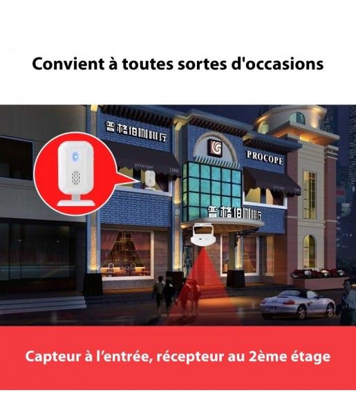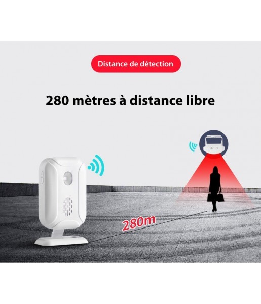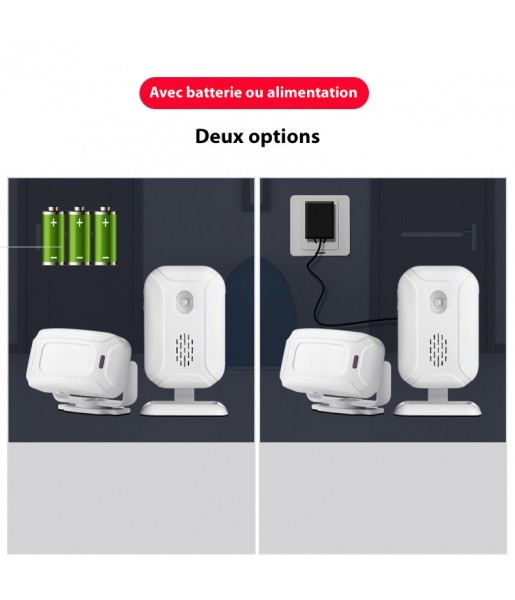 Pack Sonnette de porte Sans fil + Capteur de mouvement infrarouge + Télécommande - Sonnette d'ouverture de porte