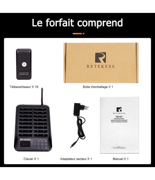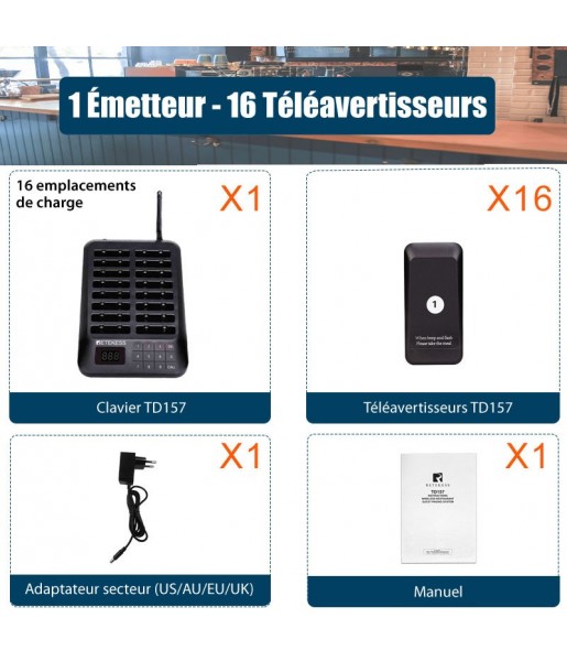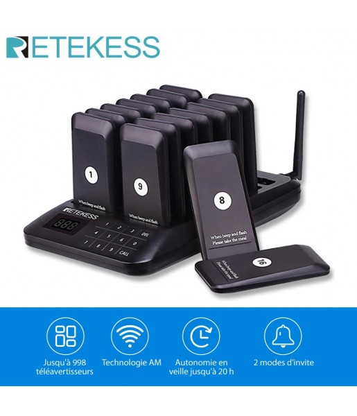 Bipeur Retekess TD157 - Restaurant Bar Fast Food Truck Dessous De Verres Buzzer Beeper Bipper Cloche D Appel 16 Téléavertisseurs