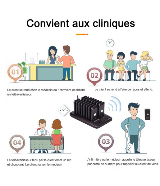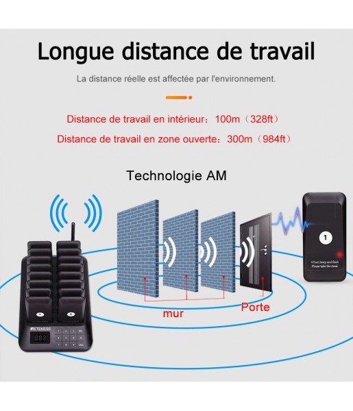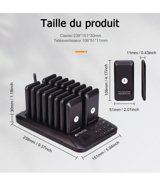 1. Les téléavertisseurs jusqu'à 998 peuvent être étendus pour résoudre le problème de la file d'attente. Un clavier peut charger jusqu'à 16 téléavertisseurs en même temps.