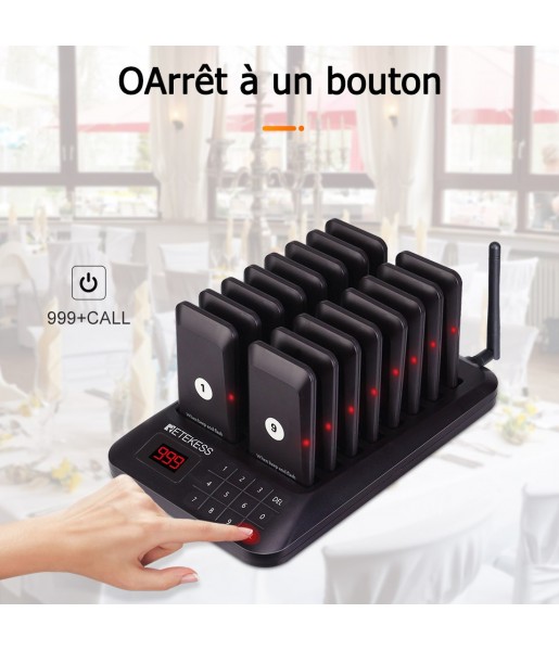 Arrêt à un bouton : placez le téléavertisseur sur la fente de chargement pour l'allumer. Appuyez sur 999 + CALL pour éteindre le téléavertisseur sur la fente de chargement. Facile à utiliser, simple et rapide.
