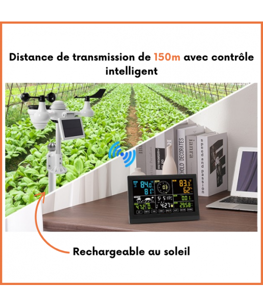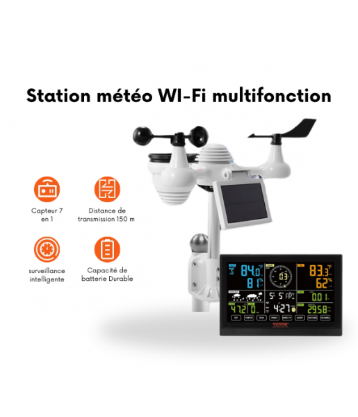 Station Météo solaire Wifi 7 en 1Intérieur/Extérieur Sans Fil