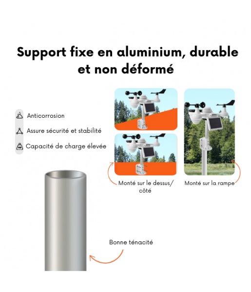 Son capteur multifonction mesure la température, l’humidité, la vitesse et la direction du vent, les précipitations, la luminosité et même l’index UV. Son écran LCD haute définition de 7,5 pouces affiche clairement toutes les informations pour un suivi météo simplifié. Avec son alimentation hybride (panneau solaire et batterie rechargeable), elle allie performance et respect de l’environnement.