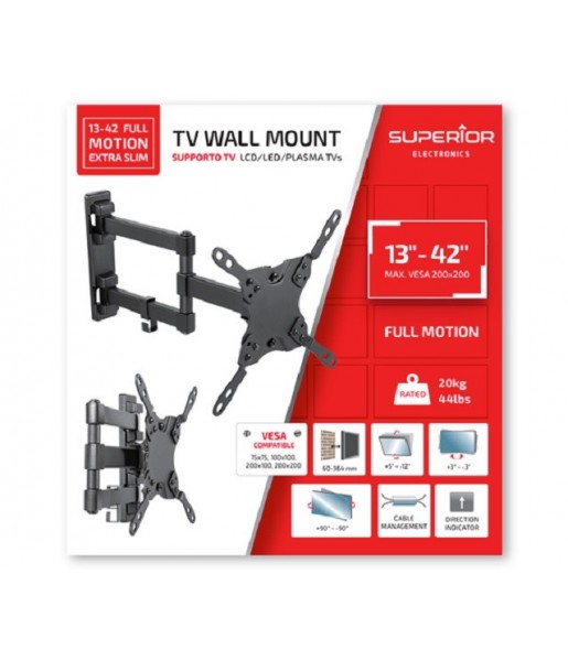 Support mural TV – Superior STV010 “13-42 Full Motion Extra Slim” - Taille TV 13″- 42″, Max vesa 200×200