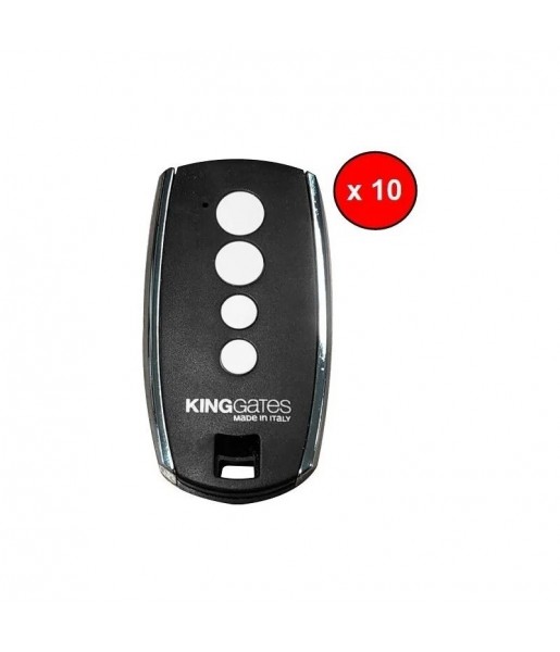 Lot de 10 télécommandes KING GATES Stylo 4K noire touches blanches, 4 boutons, de fréquence 433,92 Mhz