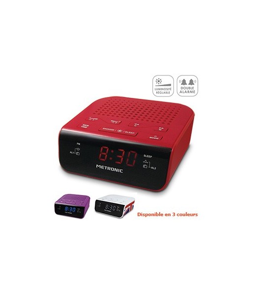 Commencez vos journées du bon pied avec le Radio réveil Pop Red avec grand afficheur. Alliant style, praticité et performance, ce réveil signé Metronic se distingue par son grand écran LED à luminosité réglable, son double système d’alarme et ses nombreuses fonctions pensées pour votre confort. Que vous soyez un lève-tôt organisé ou un dormeur invétéré, ce radio réveil moderne s’adapte parfaitement à vos habitudes.
