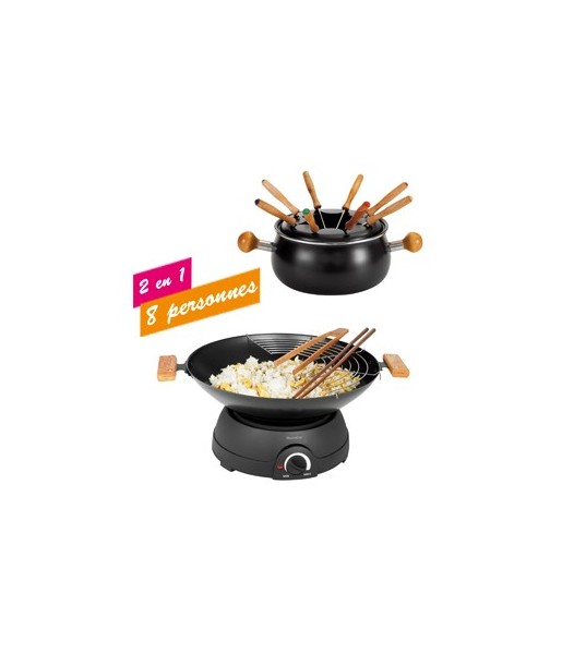 Wok et fondue électrique multifonctions 2 en 1 - 8 personnes - DomoClip