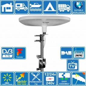 Antenne TNT Omnidirectionnelle FM VHF UHF OMNI 360 - Gain 35dB, DVB-T, ISDBAntenne TNT Omnidirectionnelle Bateau Camping