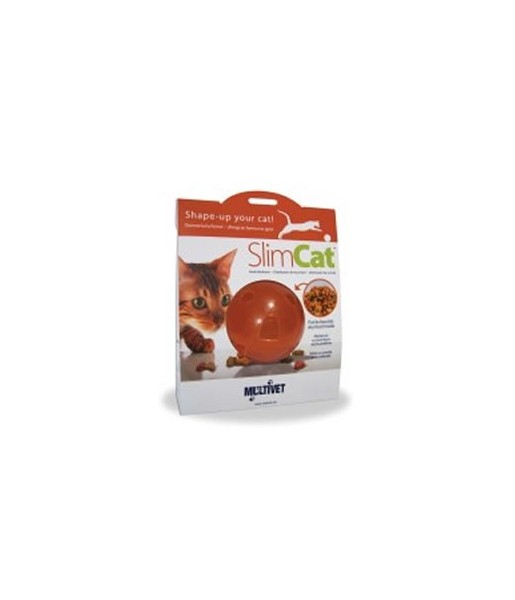 Balle à croquettes SlimCat qui permet au chat de ne pas s'ennuyer et de soigner sa ligne. La balle à croquettes SlimCat de Multivet est un jouet exceptionnel qui fait bouger votre chat et prend soin de sa ligne.