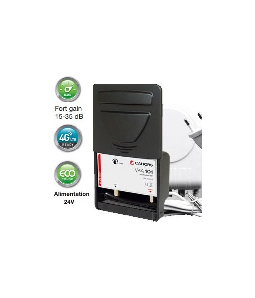 Le kit préamplificateur de mât VKA101 est conçu pour amplifier les signaux analogiques et numériques terrestres UHF (DVB-T). L’amplification s’effectue par bande de fréquences, les préamplificateurs ont des facteurs de bruit très faible, les gains sont ajustables par potentiomètre sur chaque entrée.