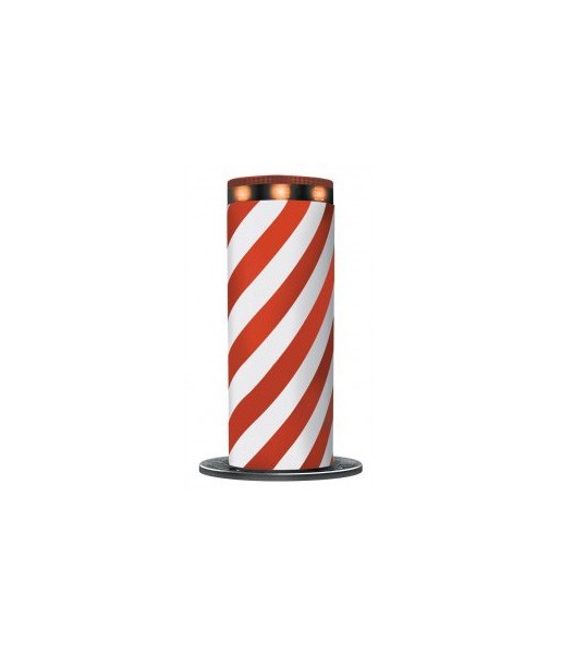 Borne escamotable électrique avec couronne lumineuse terminée par un chapeau supérieur en fonte avec adhésif réfléchissant rouge.
