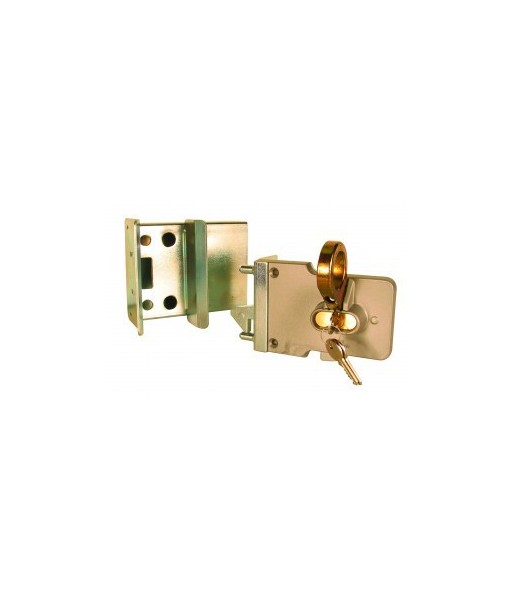 Serrure manuelle pour porte ou portail coulissant. Pose en applique livrée avec gâche et clés.