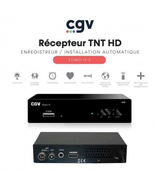 Récepteur Enregistreur TNT HD Etimo 1t-2 - Tuner, Time Shift Contrôle du direct, Timer, Instant Replay, Go-To, Touche SOS