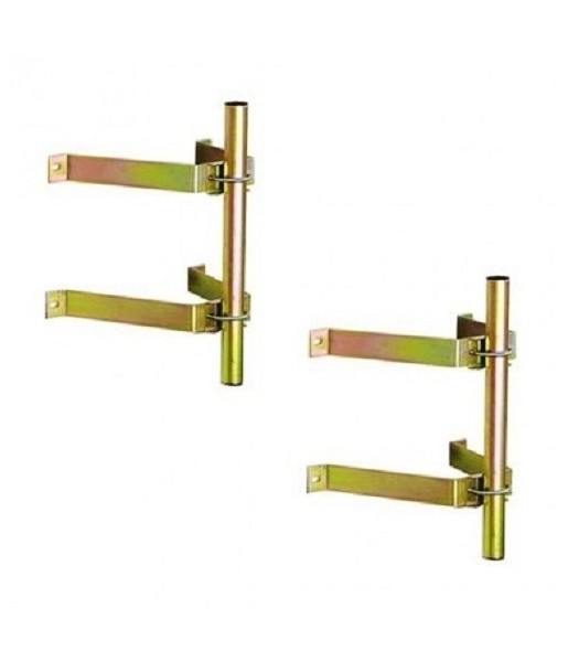 Caractéristiques techniques de la fixation type ascenseur : Fixation murale type cabine d'ascenseur 2 fixations murales Sans contre plaque Déport de 270 mm Pour mât Ø 30 à 50 mm Acier zing bichromaté Fixation robuste Fabrication française TONNA Fixation murale type ascenseur - déport 270 mm (lot de 2) Ce lot de deux fixations murales de type ascenseur est un accessoire pour la fixation sur un mur de votre antenne terrestre ou satellite.